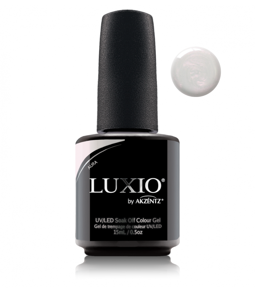 Luxio Aura - En fräsch tolkning av en klassisk manikyrnyans. Auras fascinerande, iriserande finish tillför en helt ny dimension till Luxiokollektionen. Dess mjuka vita bas kommer till liv med delikata skimmer som elegant växlar mellan guld och rosa, vilket skapar ett förtrollande ljusspel. Resultatet är en sofistikerad, modern finish som känns både eterisk och tidlös. Aura kan bäras ensam för ett halvgenomskinligt, satintäckande utseende som utstrålar lyx. Alternativt kan du lägga det över dina favoritfärger för en blygsam, mjuk effekt som tillför ett viskande skimmer och höjer vilken Luxiomanikyr som helst till ett konstverk.